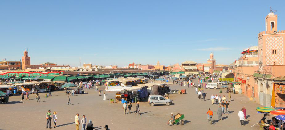 2- Площадь Джемаа эль- Фна: По данным ЮНЕСКО является одним из самых известных мест в мире. Здесь, вы увидите сказочников, заклинателей змей, музыкантов , продавцов воды,дрессировщиков обезьян.... Во второй половине дня, место заполнено продовольственными киосками с разнообразной марокканской кухней.