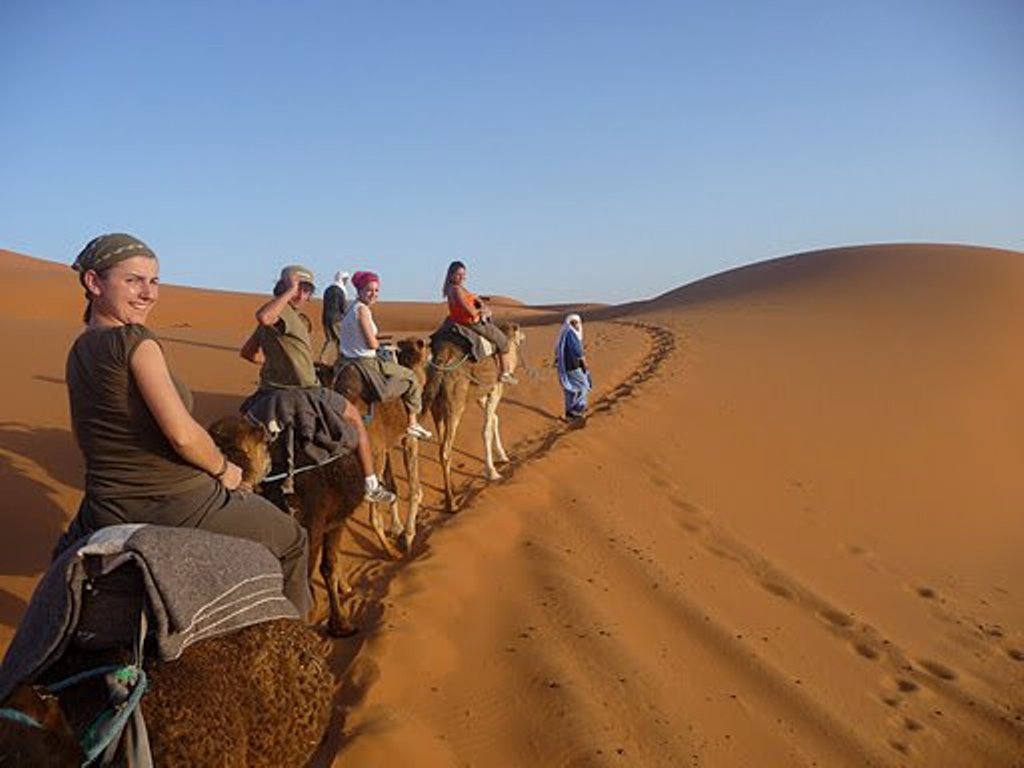 После завтрака,исследуйте окрестности Мерзуги,посетите людей Гнава - изначально рабы ,привезенные из Судана, познакомтесь с их культурой. Недалеко расположено озеро Мерзуга.После сильных дождей оно наполняется водой,что привлекает большое количество птиц. Вы также можете посетить базары в Риссани и Taфилалте,через которые проходят караванные пути из Тимбукту в Мали. Вы увидите завуалированных женщин. Возвращение в деревню Мерзуга для небольшого отдыха. Во второй половине дня, вместе с опытным гидом, начнете поездку на верблюдах,чтобы насладиться восхитительным закатом солнца в пустыне.С наступлением ночи полюбуйтесь необычайно красивым небом с миллионом ярких звезд и луной,освещающей дюны. Ужин и ночлег в нашем лагере, в пустыне. Для вашего удобства, в лагере имеются индивидуальные палатки и ванные комнаты. (Полупансион).